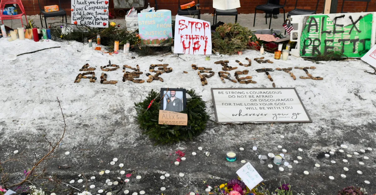 A federal agent shoves a girl to the bottom. A younger man walks over to assist her up. Then the agent pepper-sprays them each.